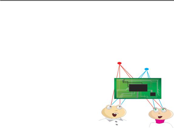 чик, принимающий изображение из какой либо точки, например, со спины, посылает видеосигнал на процессор, который перенап равляет его на соответствующий участок “экрана” спереди.