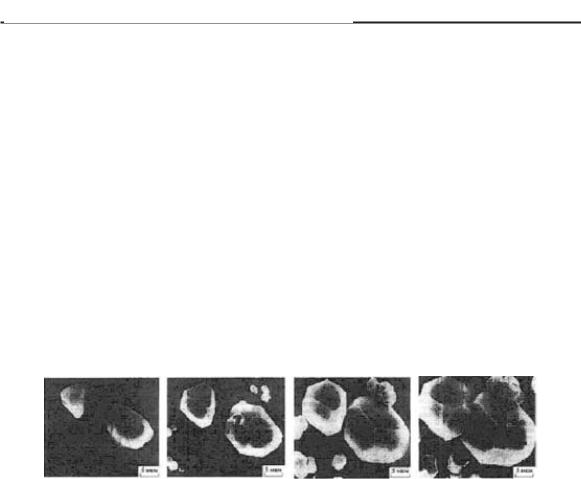 Рис 88. а) 0 мин, б) 15 мин, в) 30 мин, г) 60 мин после начала наращивания затравочных кристаллов алмаза, помещенных на медную подложку