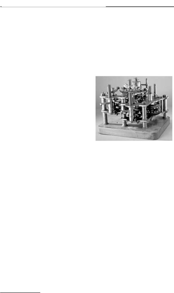 История создания компьютеров начинается в девятнадца том веке с универсальной механической машины Чарльза Бэб биджа. В 1833 г. английский ученый, профессор Кембриджского университета Чарльз Бэббидж разработал гигантский арифмо метр с программным управлением, арифметическим и запоми нающим устройствами. Аналити ческая машина Бэббиджа стала предшественницей и прообразом современных компьютеров и ма шин с программным управлени ем. Как ни странно, но она была полностью механической. И это не мешало ей выполнять простей шие арифметические и логичес кие операции, а также хранить