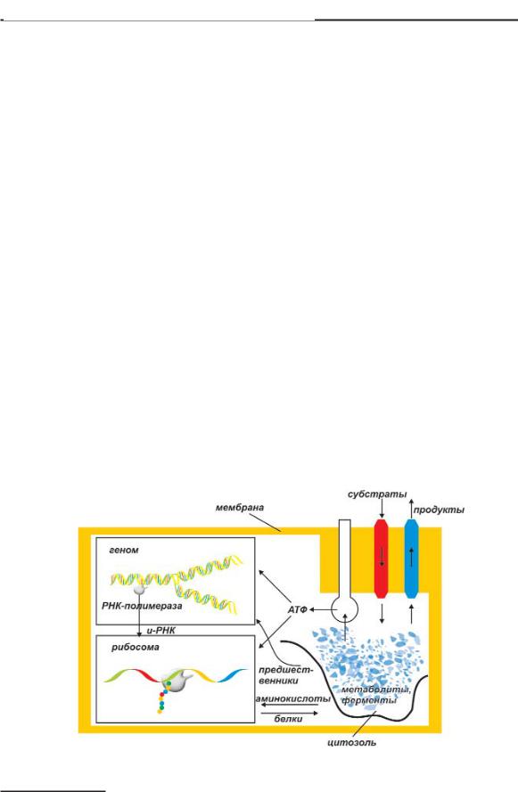 Одна из главных подсистем клетки – цитозоль – представ ляет собой внутреннюю полужидкую среду клетки. Это своеоб разный «котел» всех метаболических превращений. Механиз мы обмена веществ в клетке направлены на ее рост и развитие. Для этого необходимы энергия и строительные блоки (амино кислоты) для производства белков. И то, и другое получается в результате переработки поступающих извне веществ. Энергия образуется в результате расщепления сложных веществ – ката* болизма, а строительные блоки – в результате синтеза, анаболиз* ма. Катаболизм и анаболизм представляют собой две основные части метаболизма – обмена веществ.