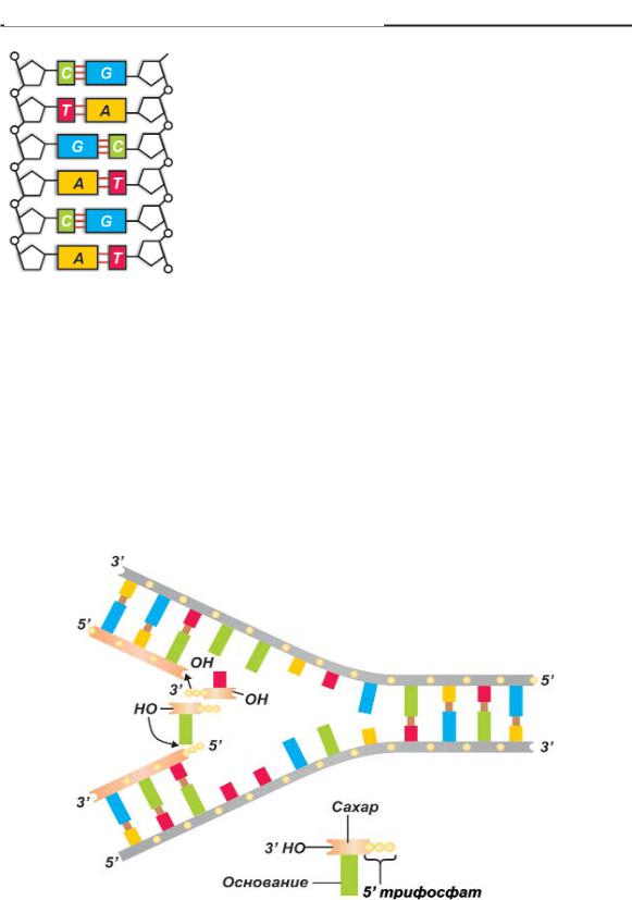 нуклеотидов, или оснований: гуанина (G), цитозина (С), тимина (T) и аденина (A). Па ры нуклеотидов связаны между собой водо родными связями, причем таким образом, что аденин соединяется с тимином, а гуанин