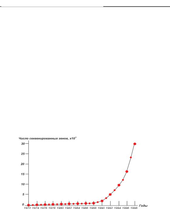 Одной из причин столь поразительного прогресса науки явилось, в первую очередь, развитие информационных техно логий. Специально разработанные программы для анализа распределения нуклеотидов в ДНК позволили достигнуть фе номенально быстрой расшифровки большинства «слов» текста нашей «книги жизни».