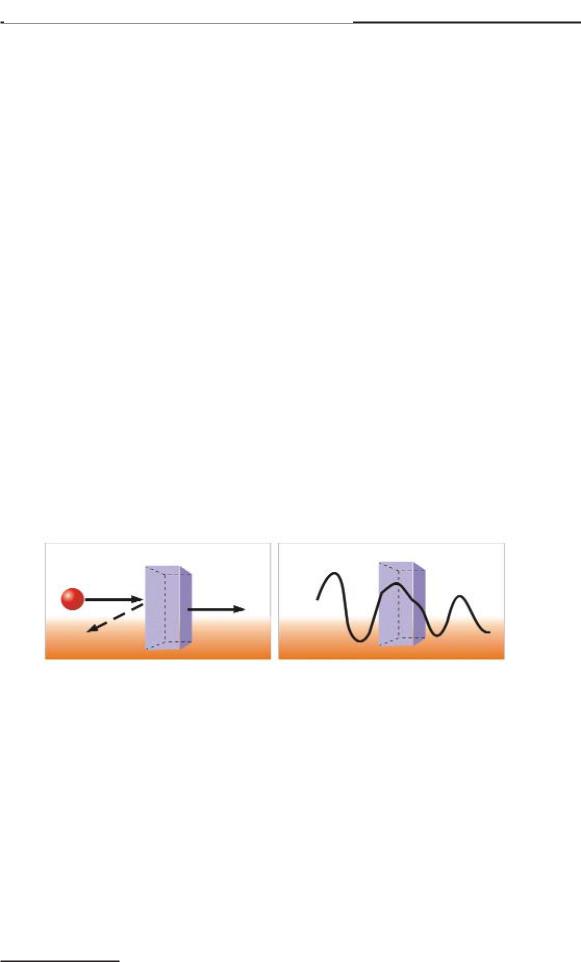 мер, если принять за материальное тело мяч, а за потенциаль ный барьер – очень высокий бетонный забор, то понятно, что если кинуть мяч в сторону забора недостаточно высоко – так, что его энергии не хватит на перелет стоящего перед ним барь ера, то он, ударившись о преграду, отскочит назад.