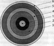 Поперечное сечение троса космического лифта само по себе является сложным техническим решением (рис. 42). В середину уложен легкий направляющий жгут 1 из волокон номекса или кевлара. Для передачи электрического тока на его поверхность укладывается тонкая оплетка 2 из медной проволоки, поверхность которой защищена от внешнего
