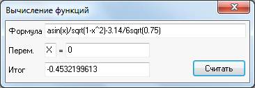Readln (E);:=a+1/2*SQR(a)*a/3+1/2*3/4*SQR(a)*SQR(a)*a/SQRT(1-SQR(a))-3.14/6*SQRT(0.75);