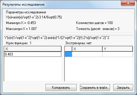 В ходе выполнения данного задания составил алгоритм и программу для вычисления наибольшего и наименьшего значений функции y=arcsin(x)/√1-x2-π/6√0.75. Программа работает исправно.