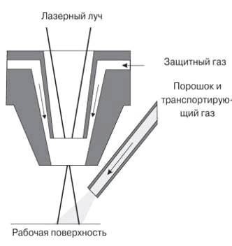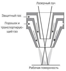 Рис.3. Схема наплавки с коаксиальной подачей порошка.