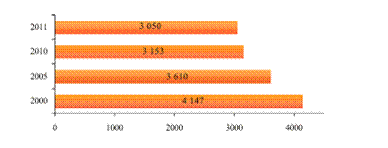 периодических изданий, но и годовой тираж. Так, в 2011 году было выпущено 918