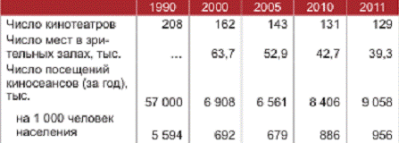 Таблица 1.3 Кинотеатры