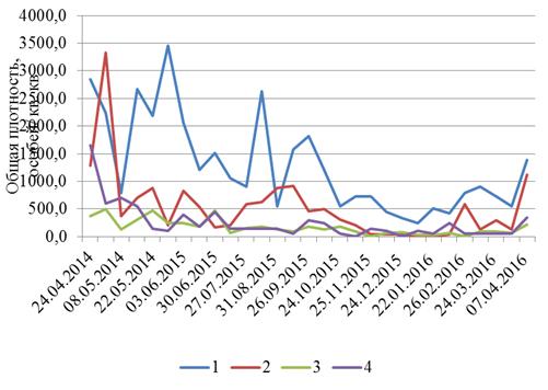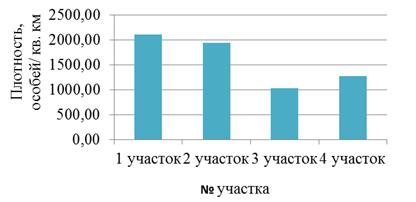 синантропные виды. На 3 и 4 участке плотность меньше, там наблюдалось
