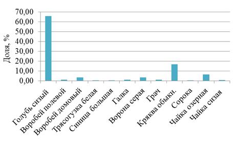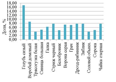 частях парка. Доминирующим видом является голубь сизый, его доля участия в