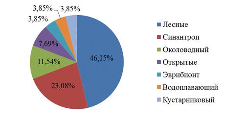 (38,46%), скрытногнездящейся (30,77%) и наземной (23,08%) орнитофауны
