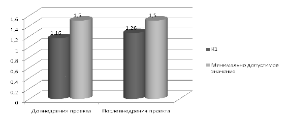 Рисунок 3.1 - Анализ динамики коэффициента текущей ликвидности (К 1).