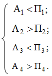 В нашем случае ликвидность баланса отличается от абсолютной, так в течение анализируемого периода соотношение имеет вид: