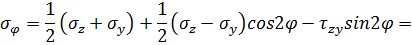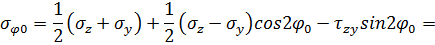 Составление площадок на которых действуют σ1 и σ2, определяется подстановкой φ0 и φ0+900 в формулу для вычисления σφ.