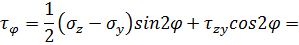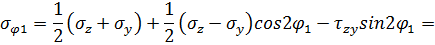 Вычисление τmax на площадке с углом наклона нормали φ1 определяется знаком величины τφ1: