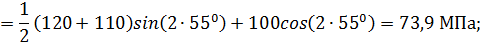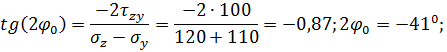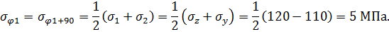 Получим σφ0+90 = σ2. Главные напряжения σ1 и σ2 вычислены верно.