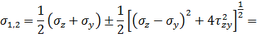 . Определение главных напряжений σ1, σ2 и положения главных площадок.