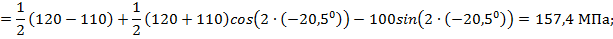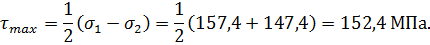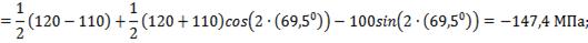 σ1= σφ0=157,4 МПа σ2= σφ0+90= - 147,4 МПа