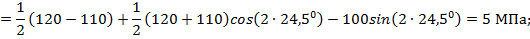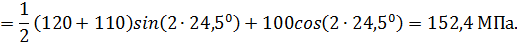 φ1=24,50 τmax=152,4 МПа σφ1= σφ1+90=5 МПа