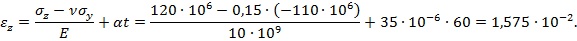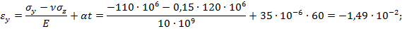 εy= - 1,49·10-2 εz=1,575·10-2 γzy=2,33·10-2