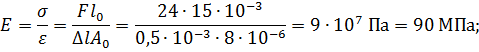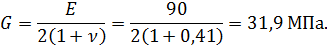 E = 90 МПа n = 0,41 G = 31,9 МПа