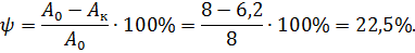 Прослеживая характер кривой при возрастании нагрузки, доходим до точки с координатами (18; 760). Это точка экстремума на кривой диаграммы, поэтому значение предела (временного сопротивления) принимаем равным σв≈760 МПа.