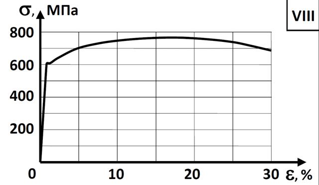 . По заданной диаграмме определить σпц, σв, σт (или σ0,2) - параметры прочных свойств материала 2 (для диаграммы с выраженной площадкой текучести найти σт, если площадка текучести отсутствует - оценить величину σ0,2).