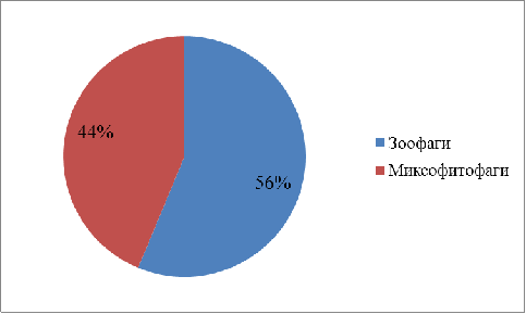 преобладают зоофаги (9 видов, 56% от общего числа) (рисунок 4).