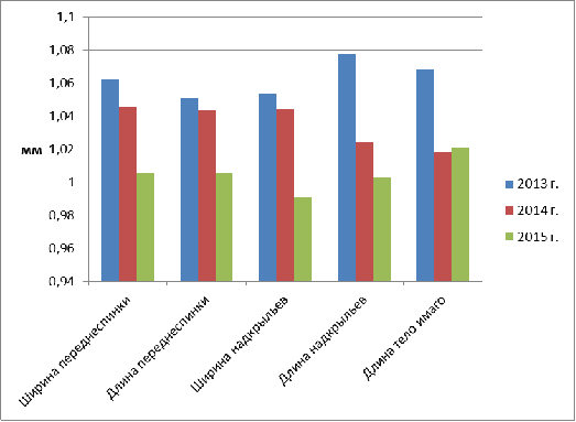 переднеспинки и надкрыльев, а так же длина имаго) было выявлено, что в популяции