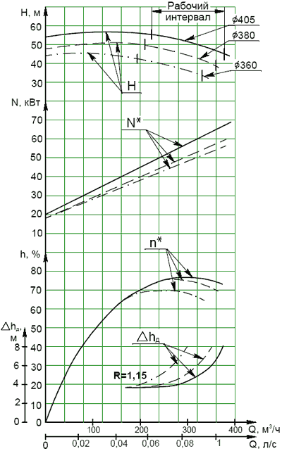 Для более полного удовлетворения требований заказчика в части обеспечения необходимых параметров предусмотрены подрезка рабочих колес и использование насосов при пониженной частоте вращения.
