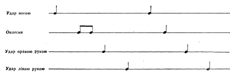 пісні. Ритмічні вправи можна вистукувати руками і ногами. Так, наприклад: