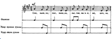 Внаслідок цього роботу доцільно починати з ритмічних одиниць, наближених до ритмів життя: биття серця, кроку, які своєю довготою дорівнюють четвертям [8, с. 108].