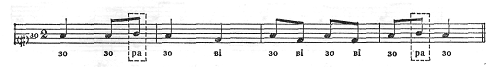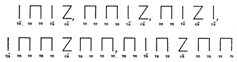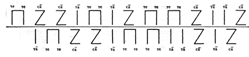 Якщо крок (четверть) позначаємо однією паличкою і складом «та» (а-довге), то паузу графічно позначимо знаком Z і складом «са».