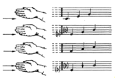 Першому (високому) даємо назву зо, другому (низькому) - ві. Крім того, кожен звук має відповідний ручний знак: