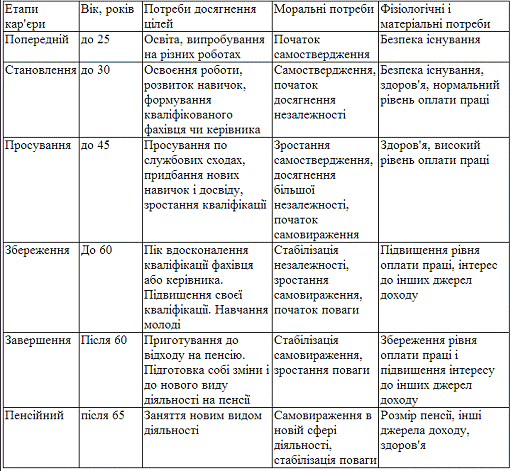 послідовних етапів, на яких людина задовольняє свої потреби (таблиця 1). Щоб