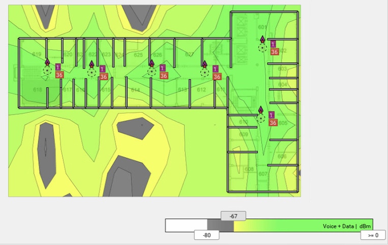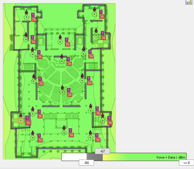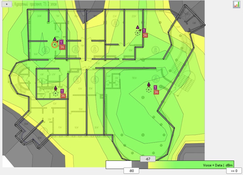 · Средняя мощность -67dBm на краю каждой ячейки.