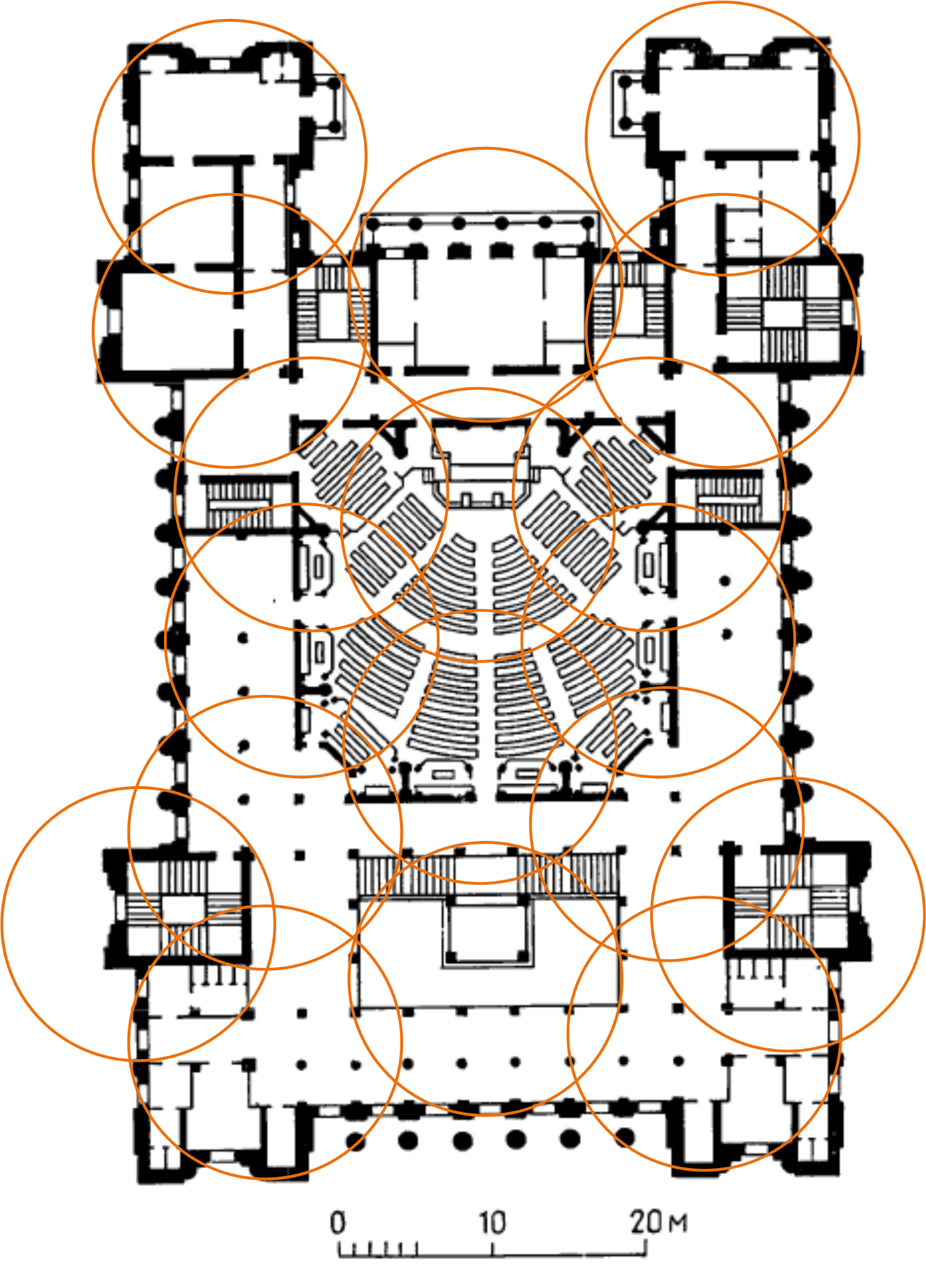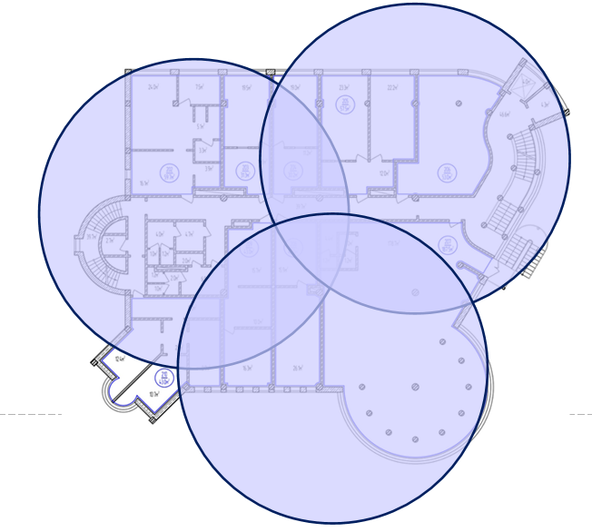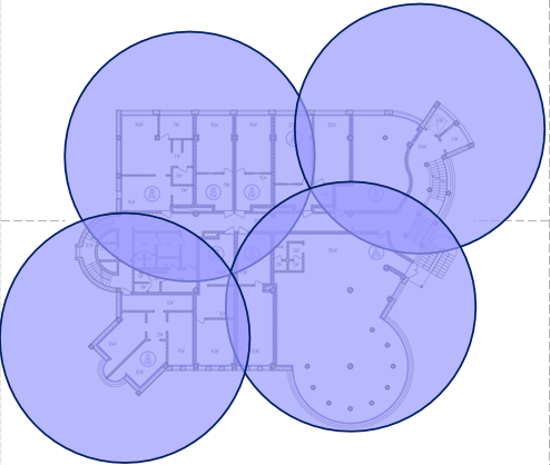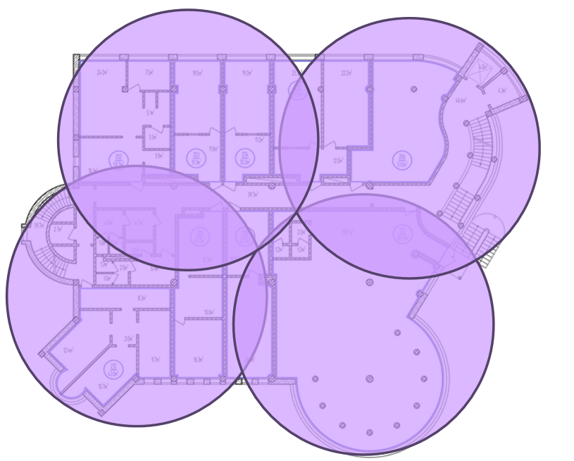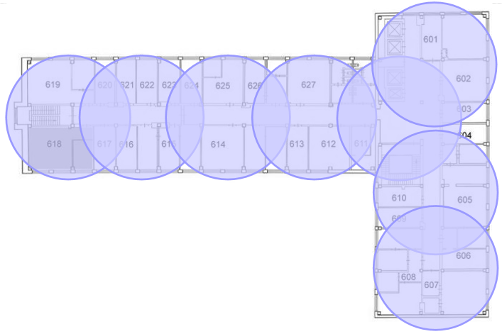 Из-за формы здания 19 точек доступа избыточно хватает для обеспечения перекрытия, поэтому используем 17 ТД.