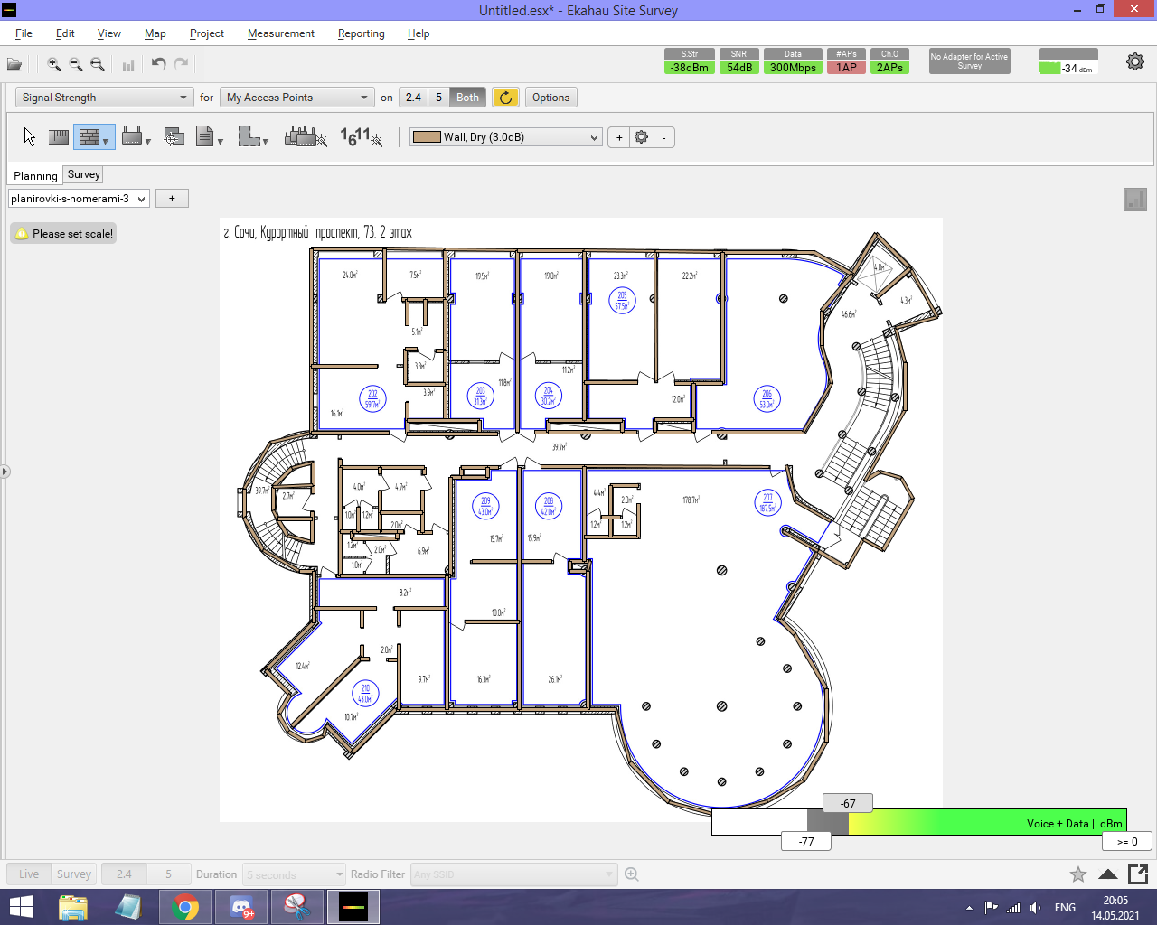 Рисунок 26 Радиообследование с использованием ПО Ekahau Site Survey