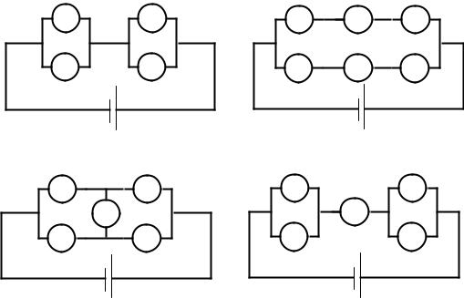 равна pk . Элементы работают независимо друг от друга. Для каждой из схем найти вероятность прохождения тока по цепи.