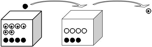б) Для нахождения вероятности того, что вынутый белый шар первоначально находился в первой урне, удобно считать, что на всех белых шарах в первой урне поставлена метка (рис. 9). Рассмотрим два несовместных события: B1 – из второй урны вынут белый шар с мет-