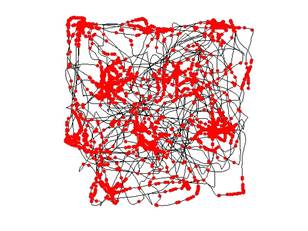 2 - Траектория перемещения крысы в огороженном пространстве. Красными точками