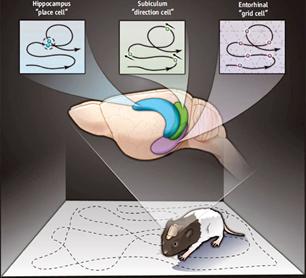 Еще в 1971 году Джон О «Киф обнаружил специальные нейроны, «нейроны места» (place cells), которые помогают животным определять точное положение в пространстве. Гораздо позже Мозеры, ученики и последователи О «Кифа, открыли «координатные нейроны» (grid cells), необходимые для того, чтобы выстраивать правильную траекторию. Первые исследования проводились на крысах, но вскоре оба эти типа клеток были обнаружены и в мозге млекопитающих, в том числе и человека.