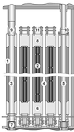 имеется 20 вертикальных отверстий, в которых установлены каналы с трехзонными