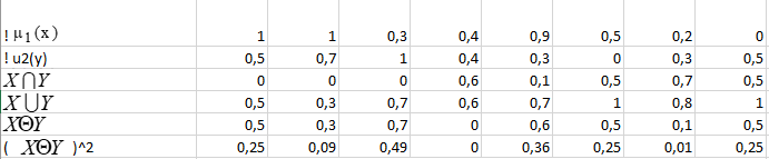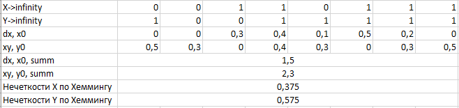 4. Знайти підмножини (звичайні), найближчі до Х і Y. Обчислити індекси нечіткості Х і Y.