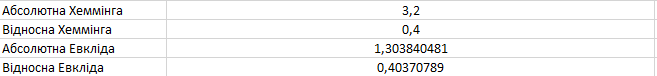 абсолютну і відносну відстані Хеммінга;