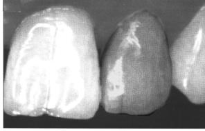1)отлома части эмали;