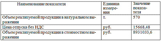 ) Объём реализуемой продукции: определили расчётным путём в таблице 1 (570)