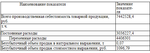 Расчет безубыточного объема продаж