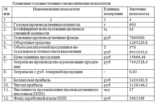 2.6 Технико-экономические показатели предприятия